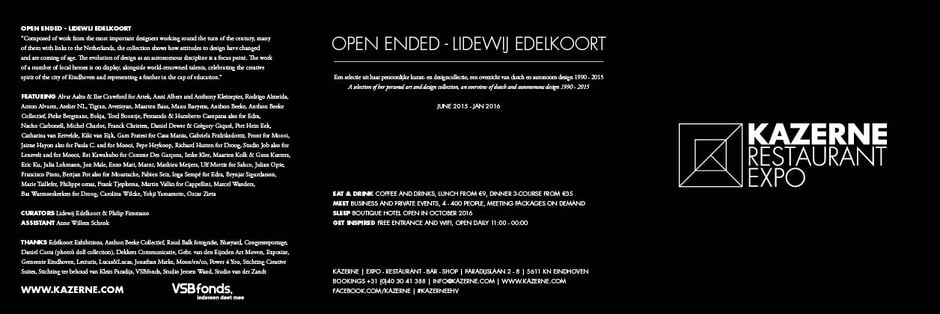 For Kazerne we designed the visual identity: the logo, stationary and business cards. Throughout the year we also design flyers, booklets and posters, to accompany the ongoing exhibitions.