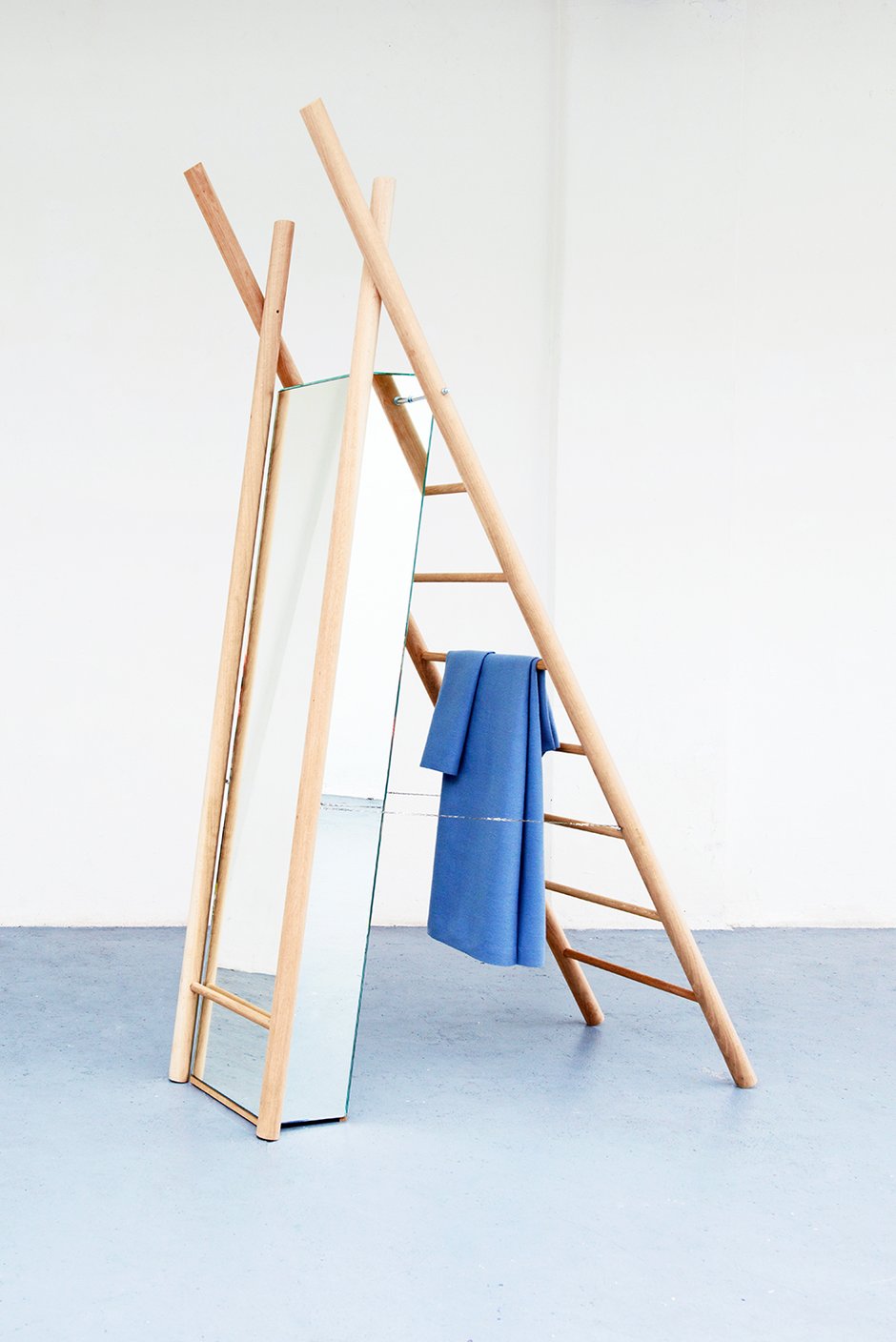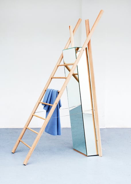 A hybrid ladder that gives you a hand in trying on - and seeing - your clothes.