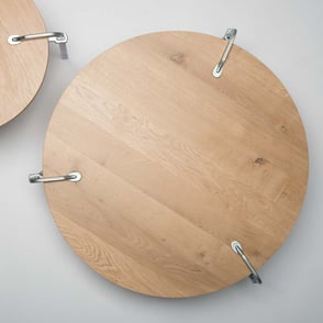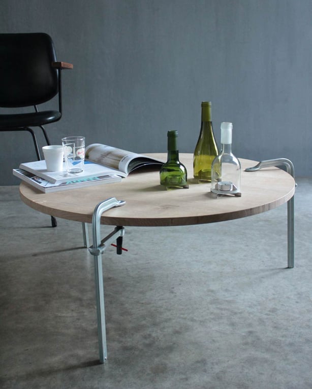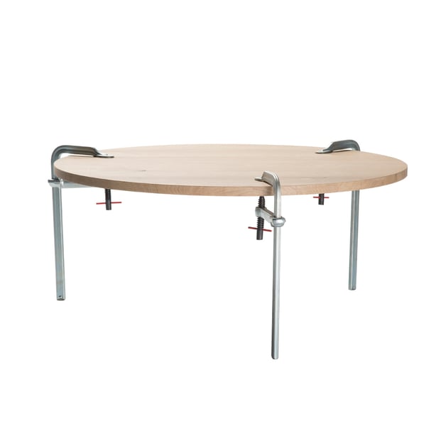 Objects that surround us in everyday life inspired us to create these two tables. By adjusting existing clamps and adding a beautifully finished oak table top, we designed a side table and a coffee table.